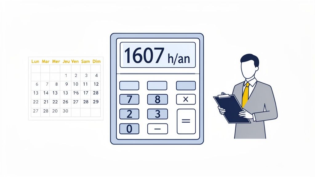 Attention, cette méthode exige de connaître précisément les heures de travail théoriques. C'est une étape cruciale pour la fiabilité de votre indicateur. Pour vous assurer que vos données sont justes, n'hésitez pas à consulter notre guide détaillé sur comment faire le calcul du temps de travail effectif.